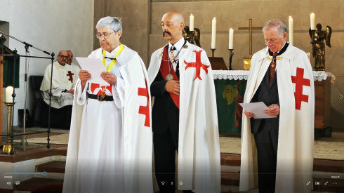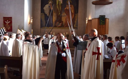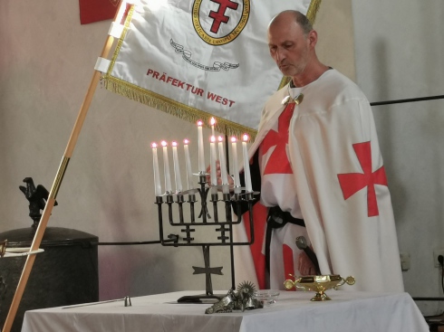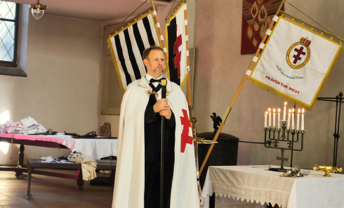 The delegation was led by H.E. Frater Heiko Bels, Grand Prior of Germany, accompanied by Fra. Gerald Dettmer, Commander of the Crie Germany-East, Fra. Thomas Block, Magisterial Counselor, and the Squire Fra. Matthias Herber.